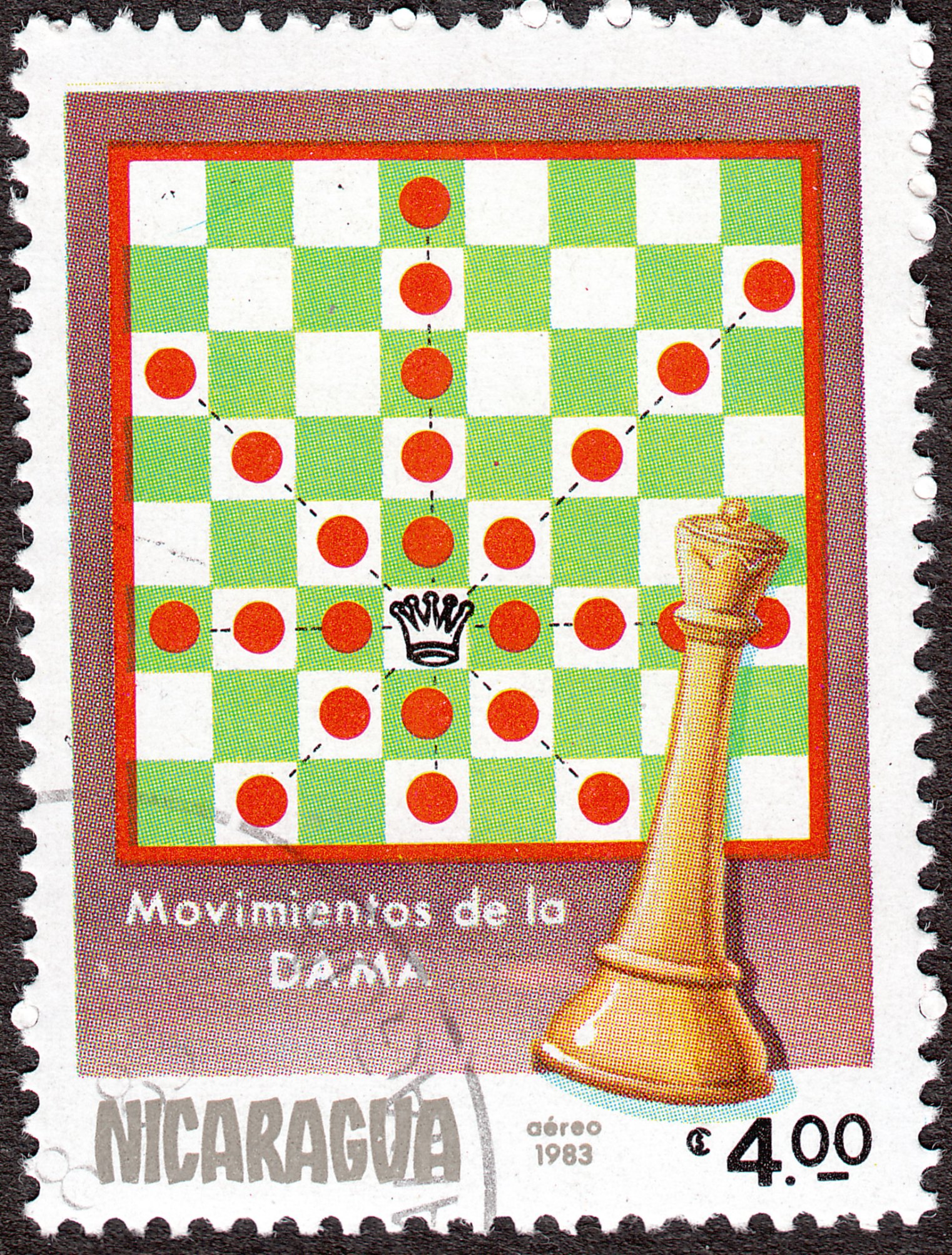 Somit resultieren in der auf dieser Marke aus Nicaragua für die weiße Dame dargestellten Spielsituation insgesamt 25 verschiedene Züge, die man zur Auswahl hat: