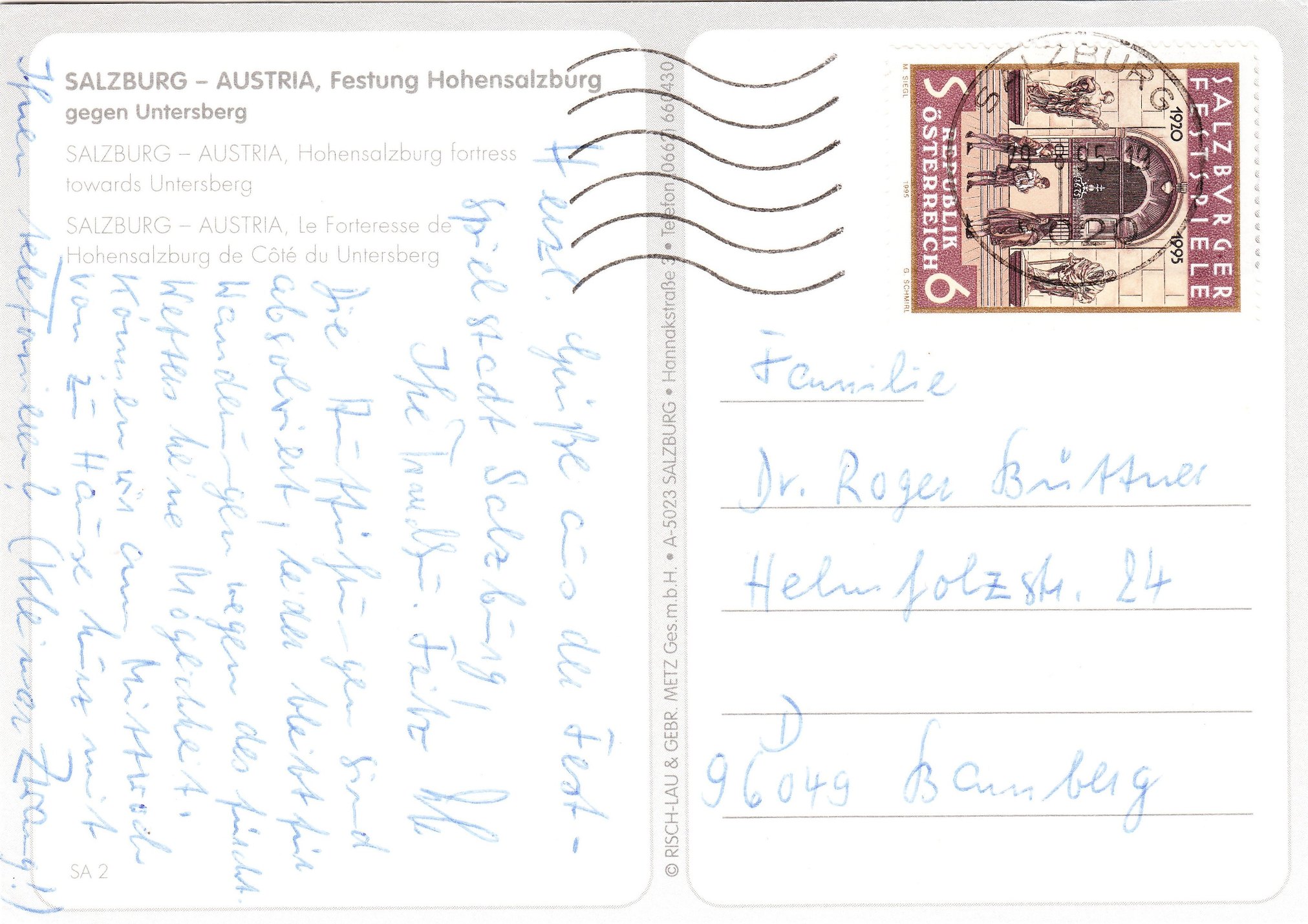Hugo von Hofmannsthal übernahm Lied I in seinen Jedermann, der bei den Salzburger Festspielen regelmäßig aufgeführt wird, was eine zum 75jährigen Jubiläum 1995 erschienene Sondermarke dokumentiert, die eine Szene aus dem "Jedermann" zeigt, hier als Einzelfrankatur am 29.08.1995 auf einer Postkarte nach Deutschland: