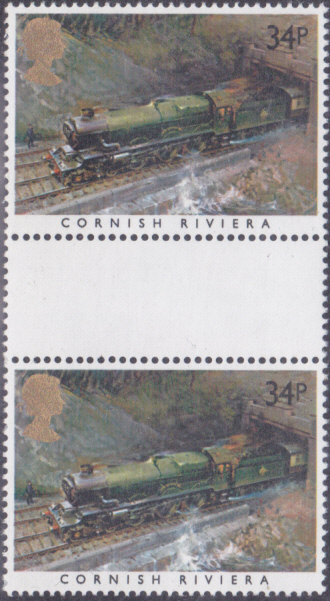 Zwischenstegpaar der Marke zu 34 Pence (MiNr 1021) mit dem "Cornish Riviera".