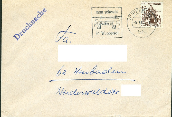 Dieser Beleg vom 11.05.1961 dokumentiert, dass die Post dabei privat von der Landesjugendausstellung in Wuppertal-Barmen mit der Schwebebahn nach Wuppertal-Vohwinkel transportiert wurde: