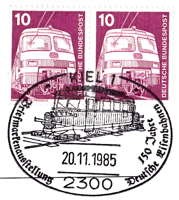 Sonderstempel vom 20.11.1985 aus Kiel zu "150 Jahre Deutsche Eisenbahn".