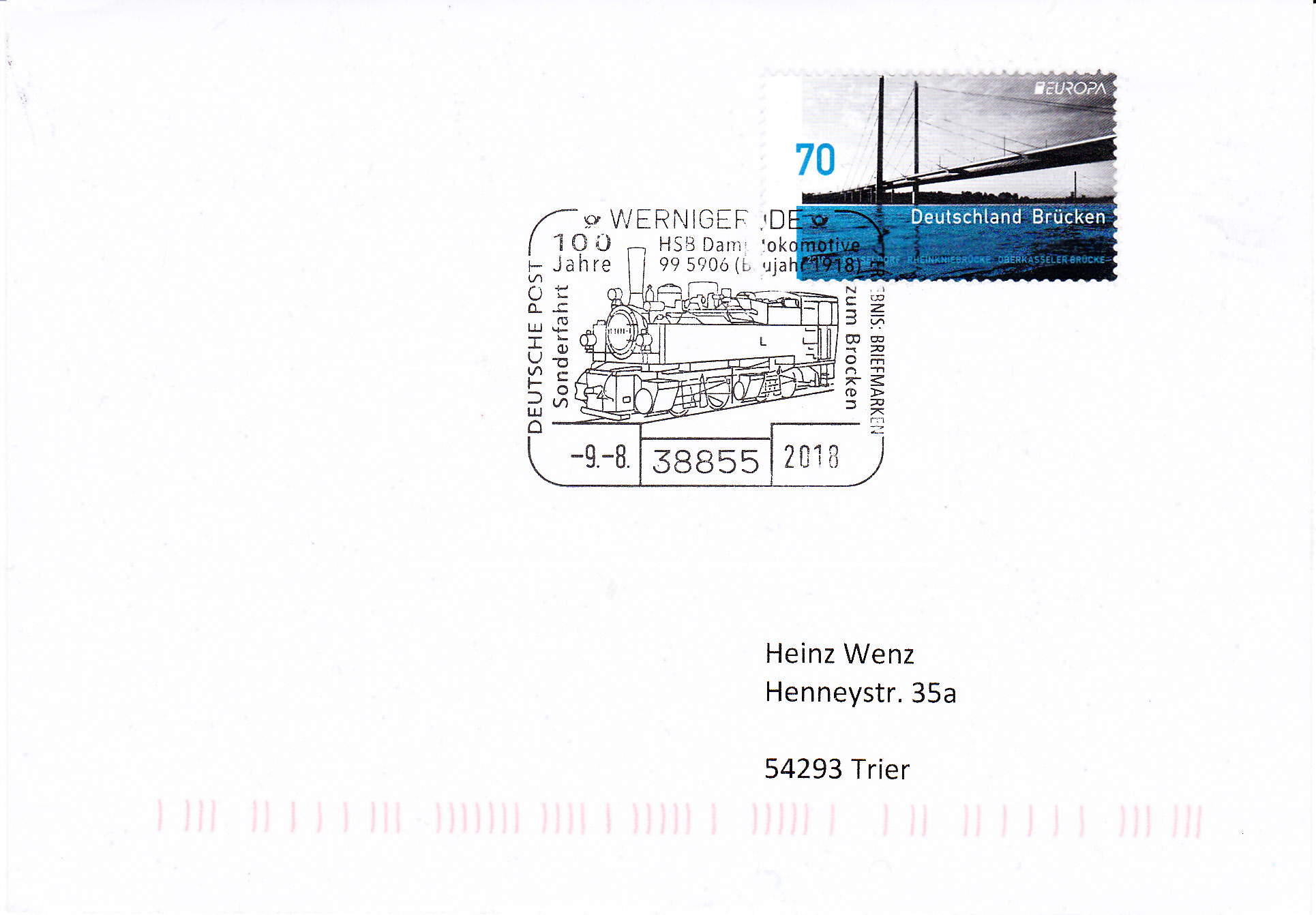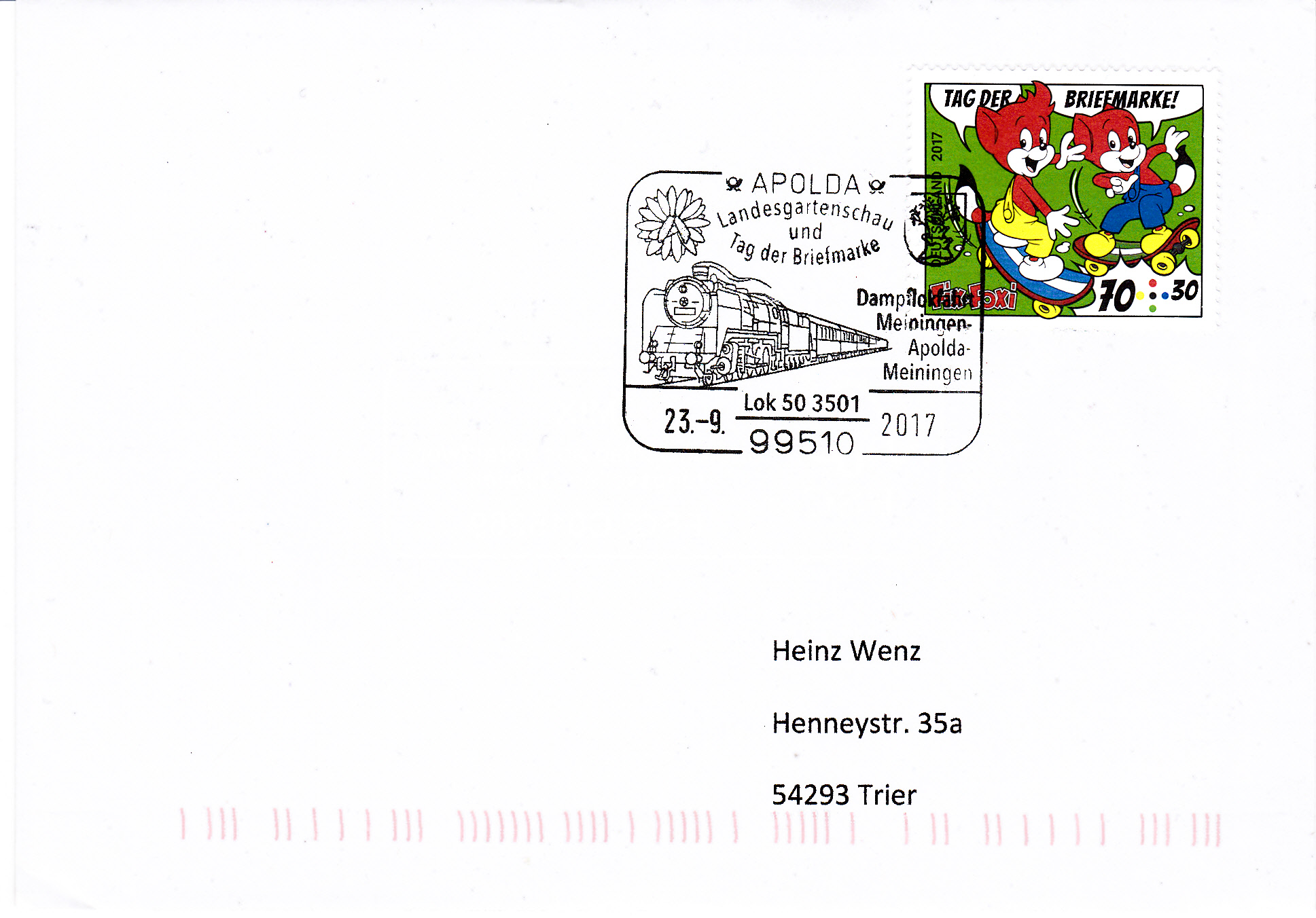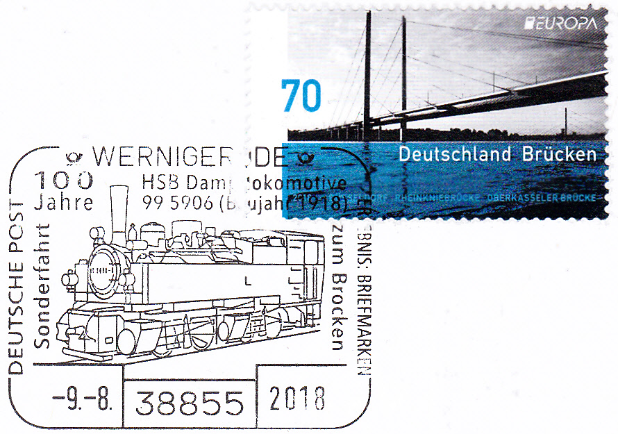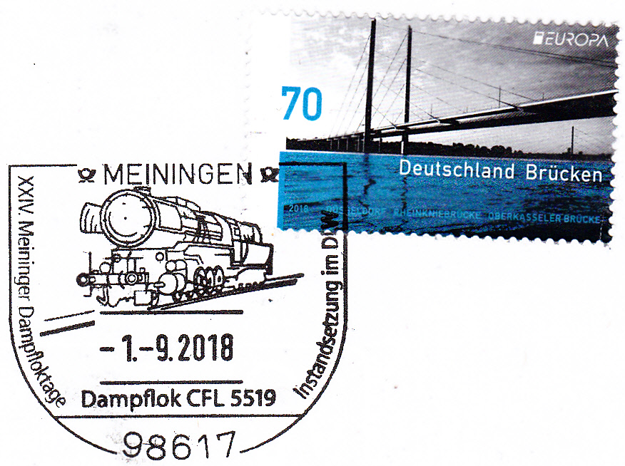 Im Sonderstempel aus Meiningen vom 1.9.2018 zu den Meininger Dampfloktagen wird die Lok CFL 5519 im Stempelbild gezeigt.