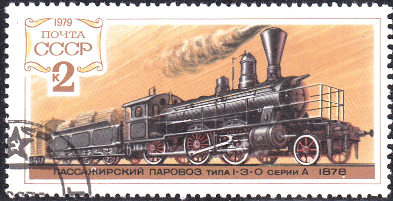 In einer Serie "Dampflokomotiven" ist in der Sowjetunion diese Marke (MiNr 4821) mit einer Personenzuglokomotive 1- 3-0, Baureihe A aus dem Jahre 1878 erschienen.