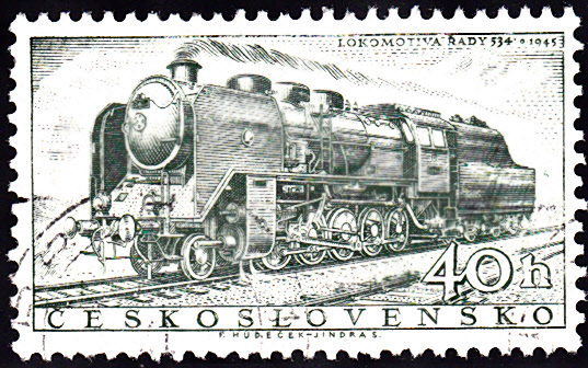 Auch diese Marke aus der Tschechoslowakei (MiNr 842) bildet eine Dampflokomotive ab.