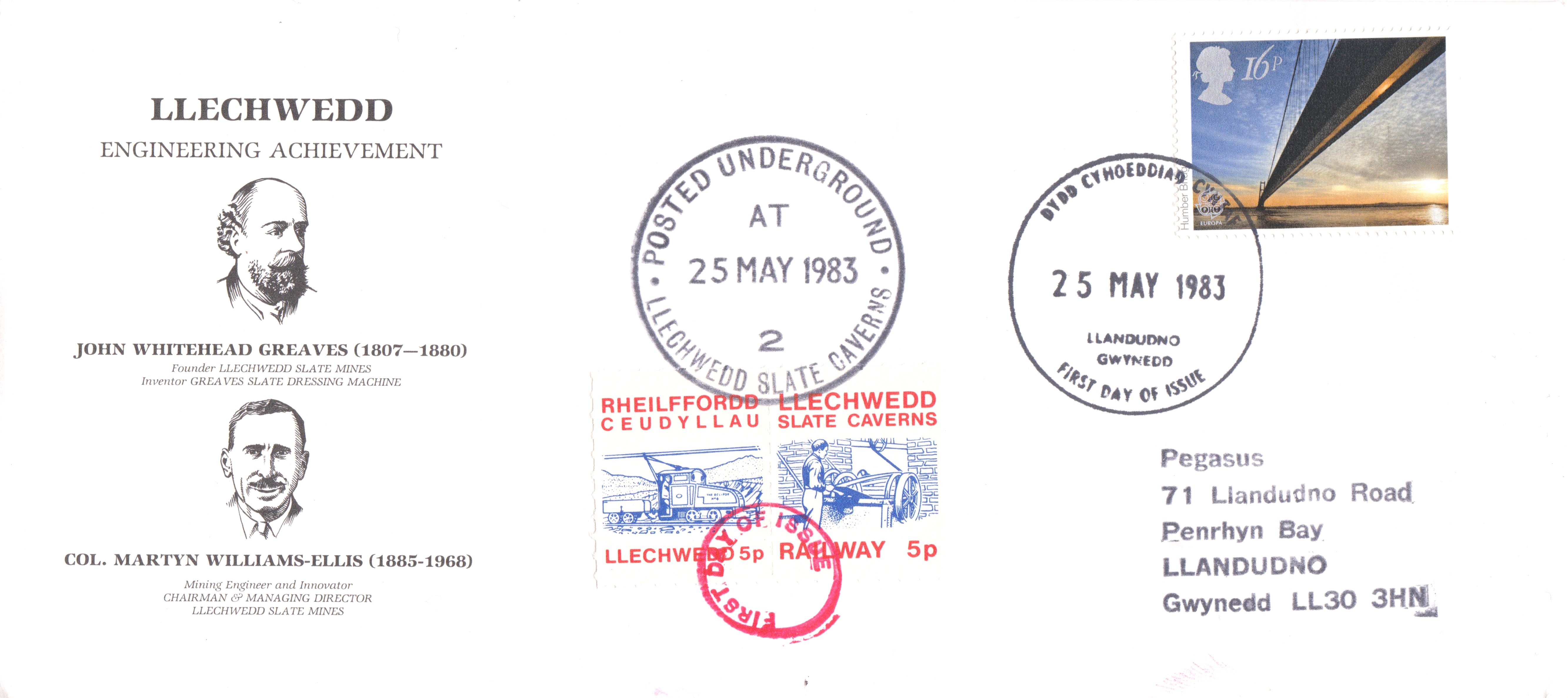Dieser Brief wurde am 25.05.1983 untertage im Bergwerk LLECHWEIDD aufgegeben: