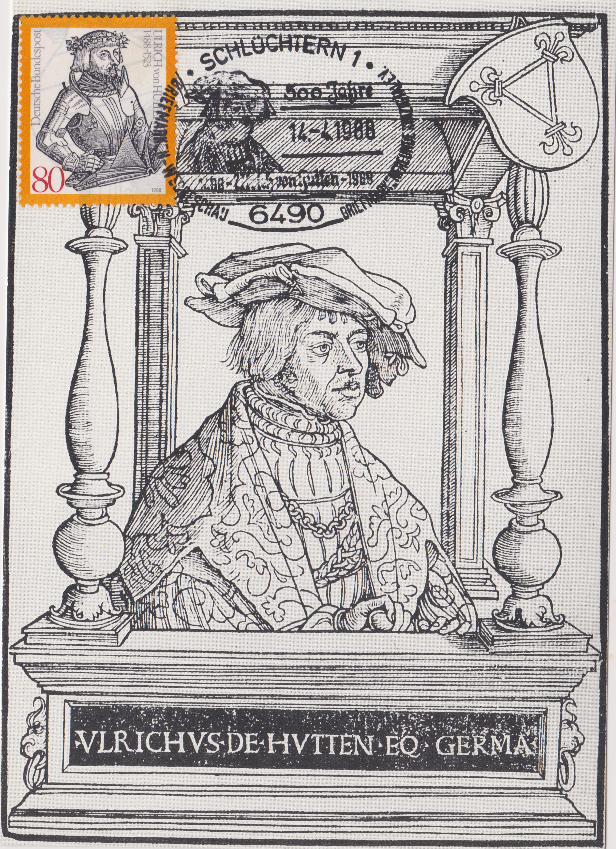 Bei der Deutschen Bundespost ist zum 500. Geburtstag von Ulrich von Hutten diese Marke (MiNr 1364) erschienen.