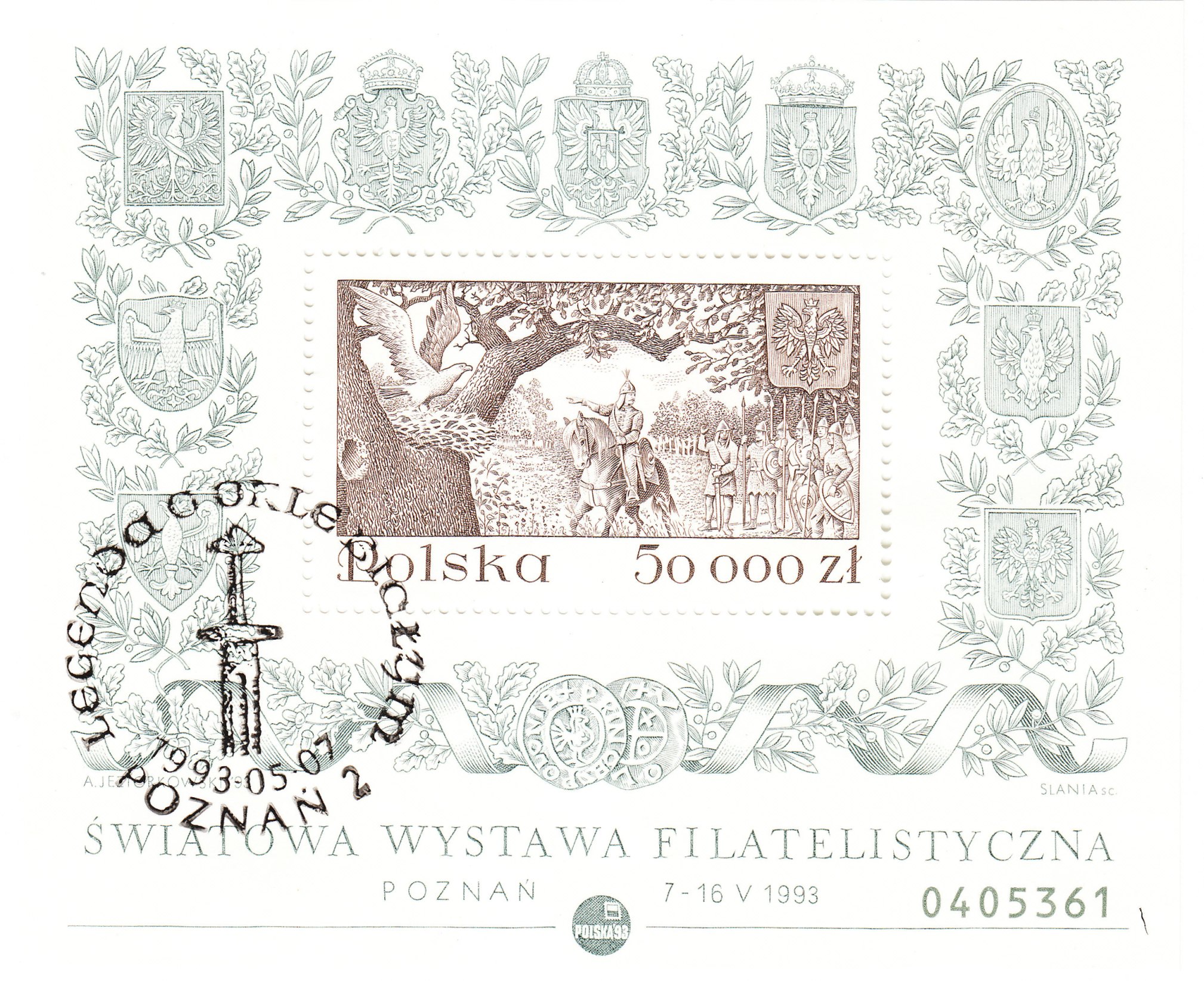 Diese Legende wird auf diesem Block aus Polen aus dem Jahre 1993 dargestellt:
