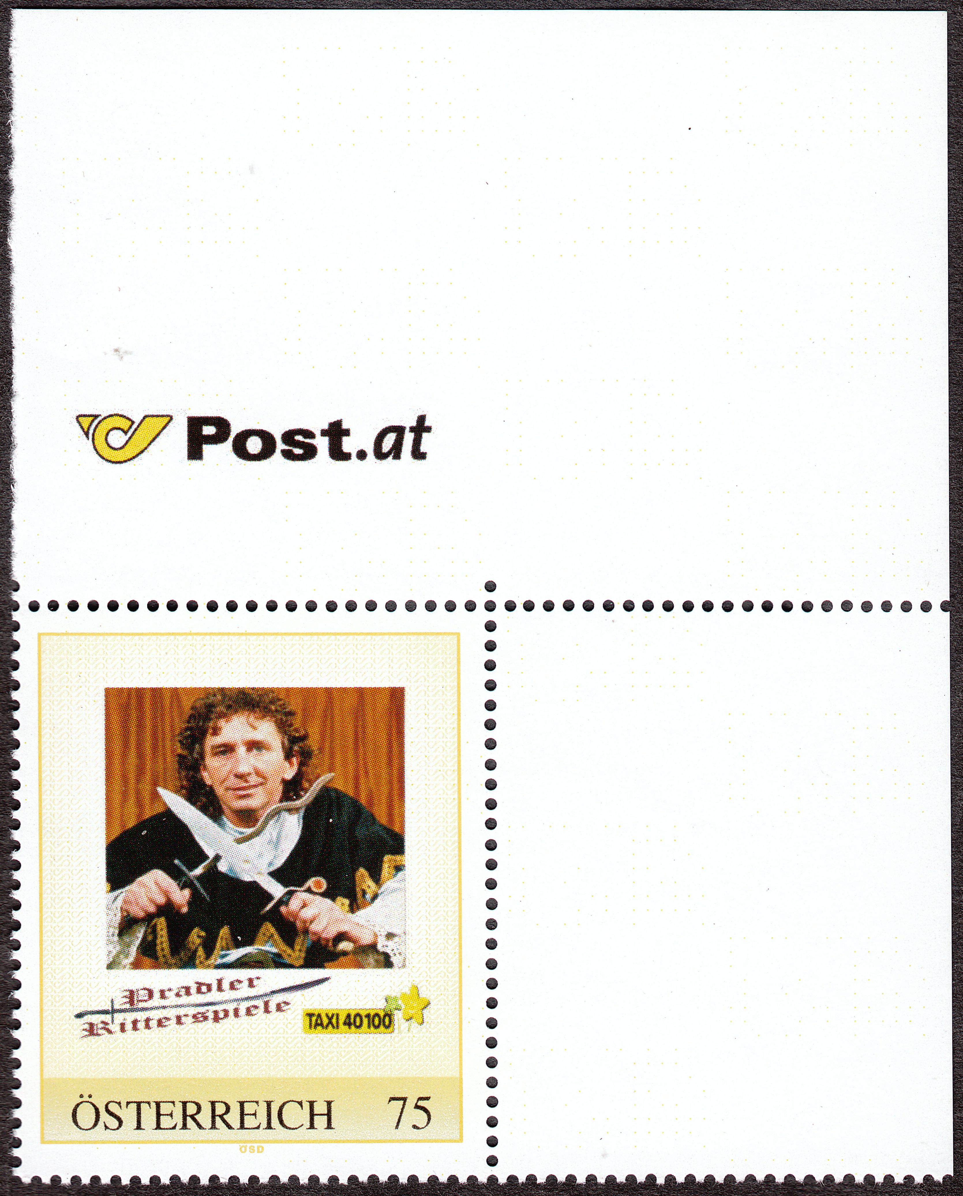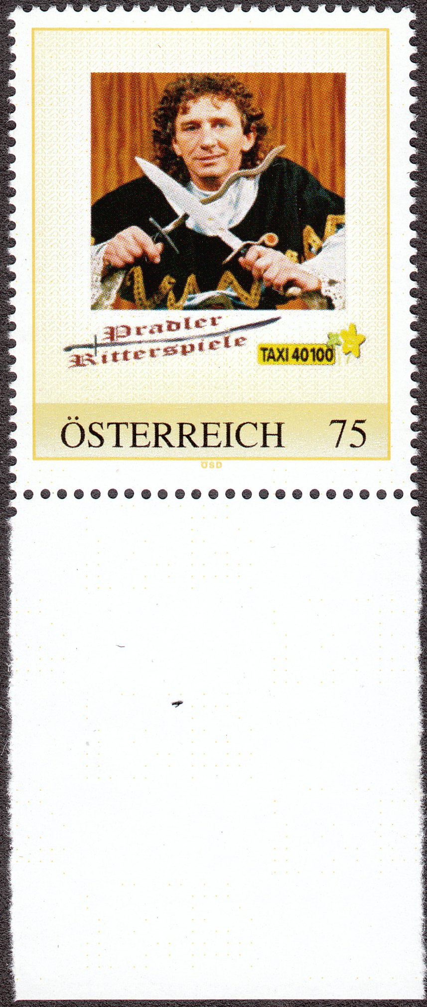 Hier eine personalisierte Marke aus Österreich mit einem Motiv der Pradler Ritterspiele: