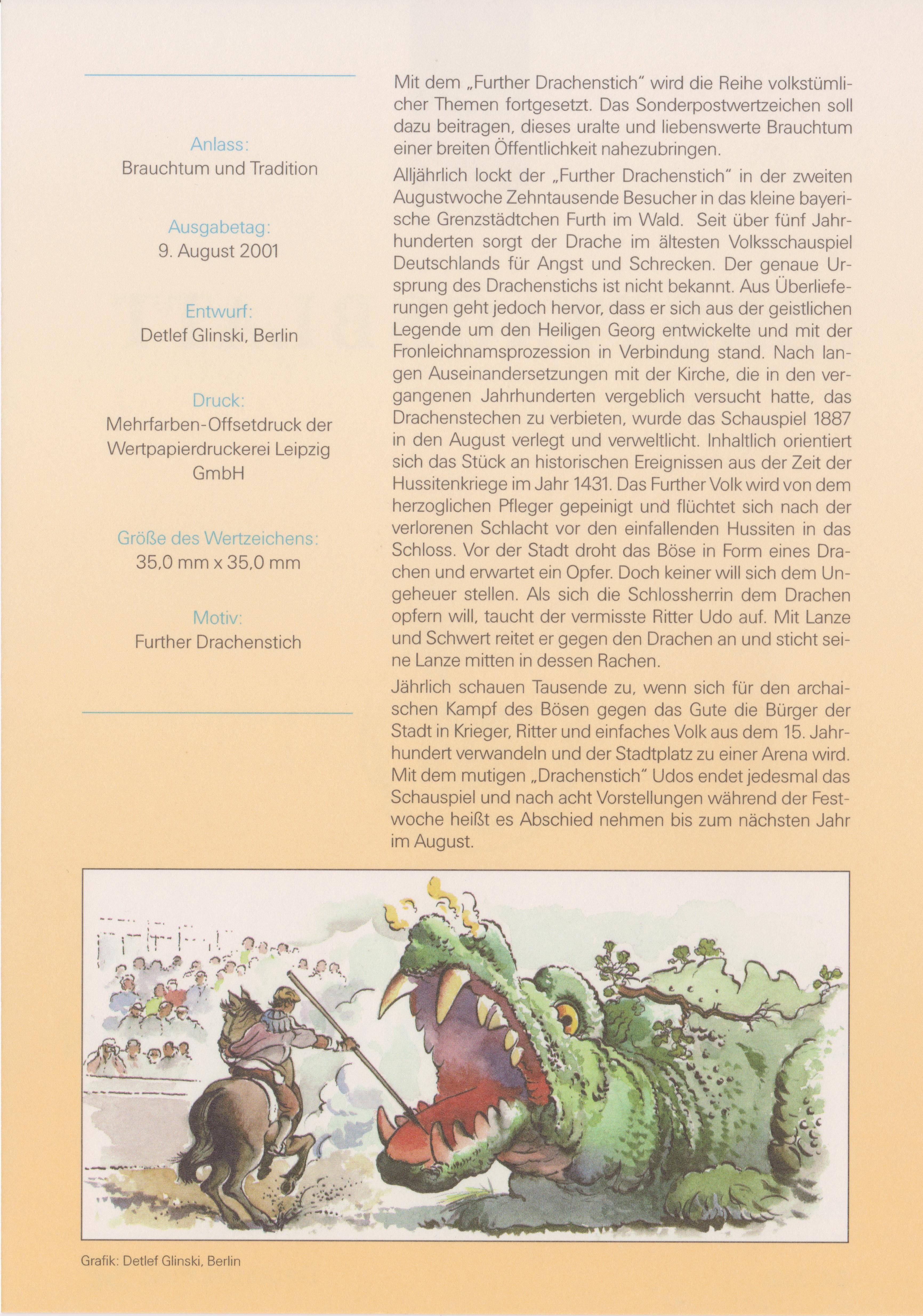 Der Drachenstich in Furth im Wald in der Oberpfalz gilt als ältestes Volksschauspiel Deutschlands. Als Drachenstich wird dabei allgemein das Töten eines Drachens bezeichnet.