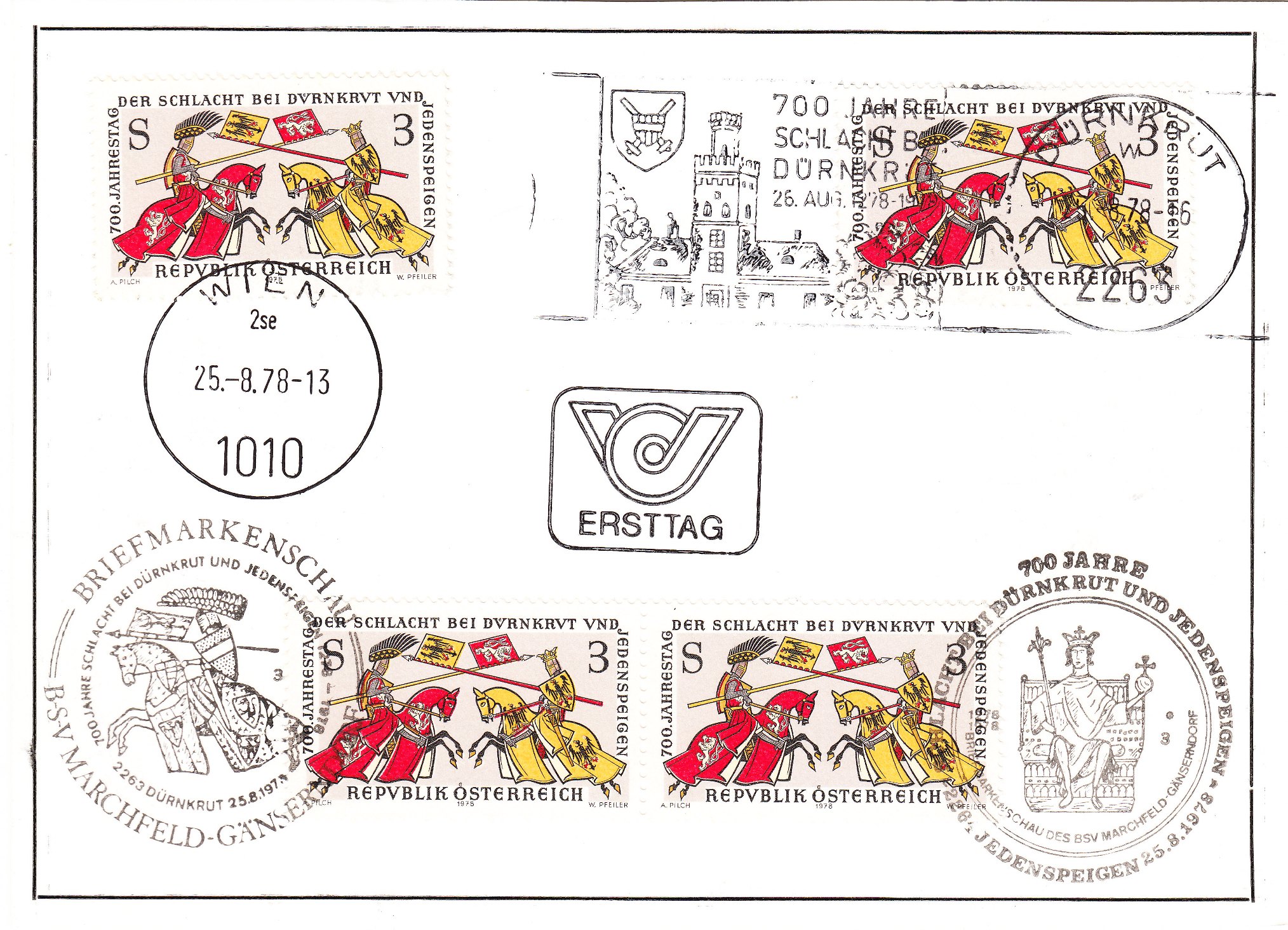 Dieser Beleg dokumentiert die Schlacht auf dem Marchfeld philatelistisch perfekt: