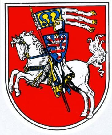 Auf einem Apfelschimmel sitzt der Landgraf beim heutigen Stadtsiegel mit einer auf den Sattelknopf gestützten kurzschäftigen Fahne: