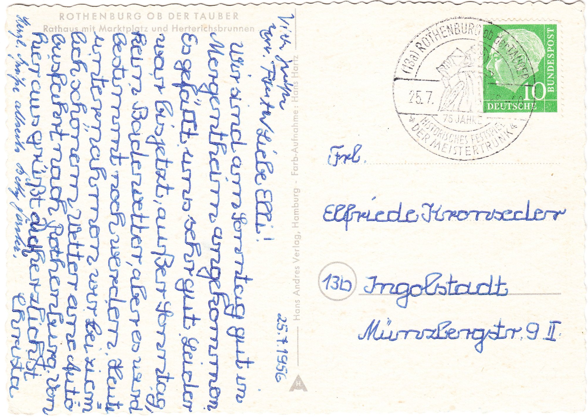 Bürgermeister Georg Nusch stellt sich der übermenschlichen Aufgabe - und schafft den "Meistertrunk", was in diesem Handwerbestempel aus dem Jahre 1956 zu sehen ist: