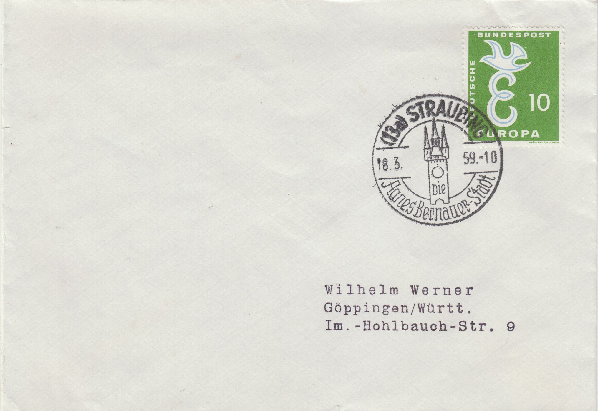 Auf diesem Handwerbestempel wurde der Straubinger Stadtturm dargestellt: