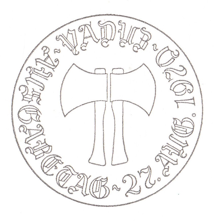 Das Motiv des ESST nimmt somit inhaltlich das Wappen auf, das er auf Schild, Lanzentuch und Pferdedecke trägt, und das zwei aufrecht stehende Beile zeigt. Die Beile bilden auch seine Helmzier.