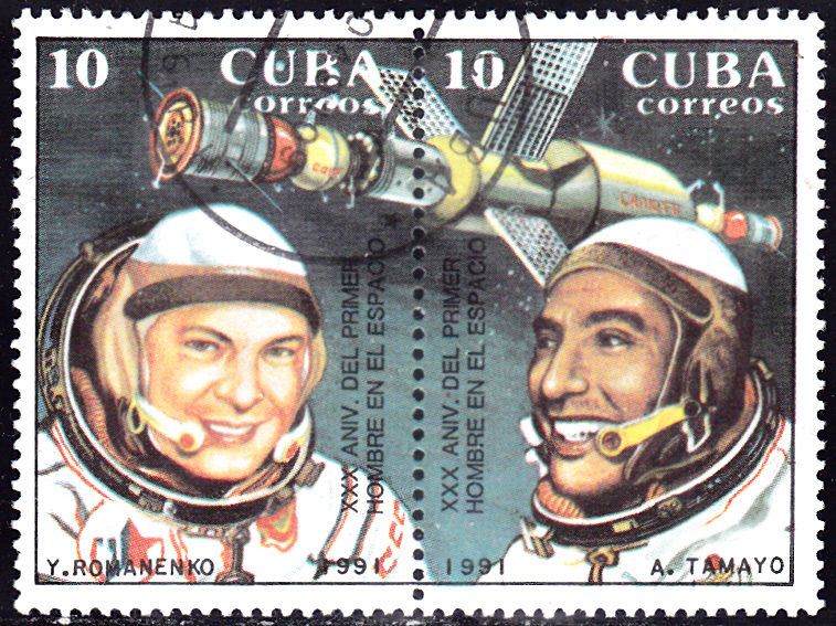 In Kuba ist in einer Serie zum 30. Jahrestag des ersten bemannten Weltraumfluges dieser Zusammendruck aus zwei Marken (MiNr 3467/3468) mit den beiden Kosmonauten Juri Wiktorowitsch Romanenko (linke Marke) und Arnaldo Tamayo Méndez (rechte Marke) erschienen.