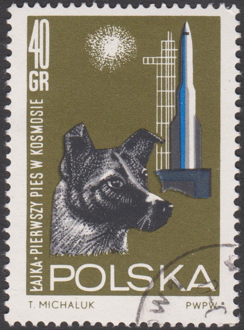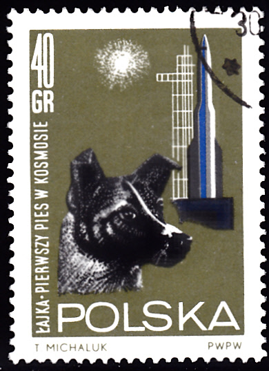 In Polen ist in einer Serie "Weltraumforschung" 1964 diese Marke (MiNr 1555) mit der Weltraumhündin "Laika" vor einer Raketenabschussrampe erschienen.