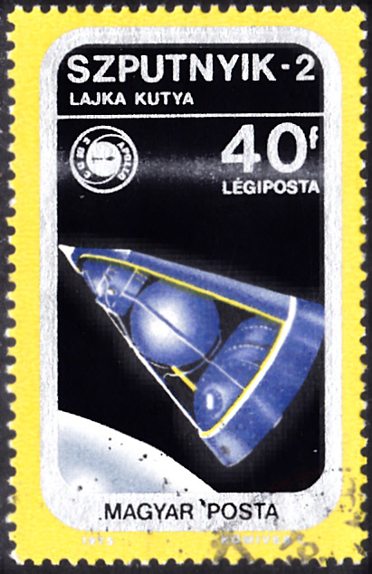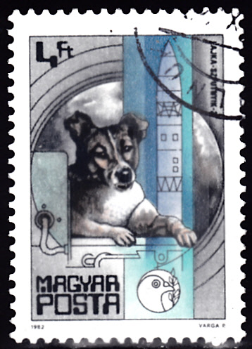 In einer Serie "25 Jahre Weltraumfahrt" ist in Ungarn diese Marke (MiNr 3561 A) mit Laika, dem ersten Hund im Weltraum mit Sputnik 2 erschienen.