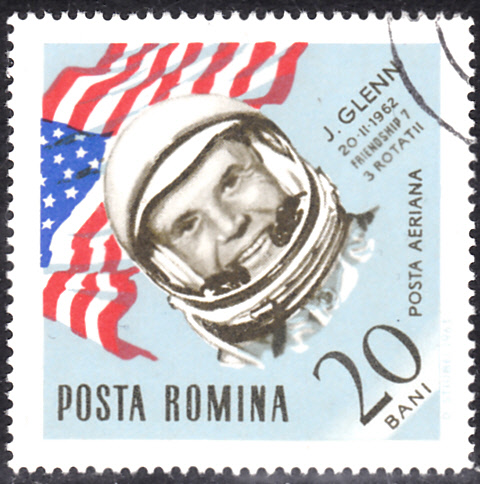 In einer Serie "Weltraumfahrt" ist in Rumänien diese Marke (MiNr 2240) mit dem Porträt von John Glenn erschienen.