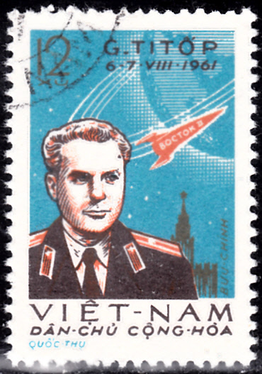 Zum Start von Wostok 2 wurden in Vietnam zwei bildgleiche Marken mit einem Porträt von German Titow, einer Rakete am Himmel und dem Kreml verausgabt.