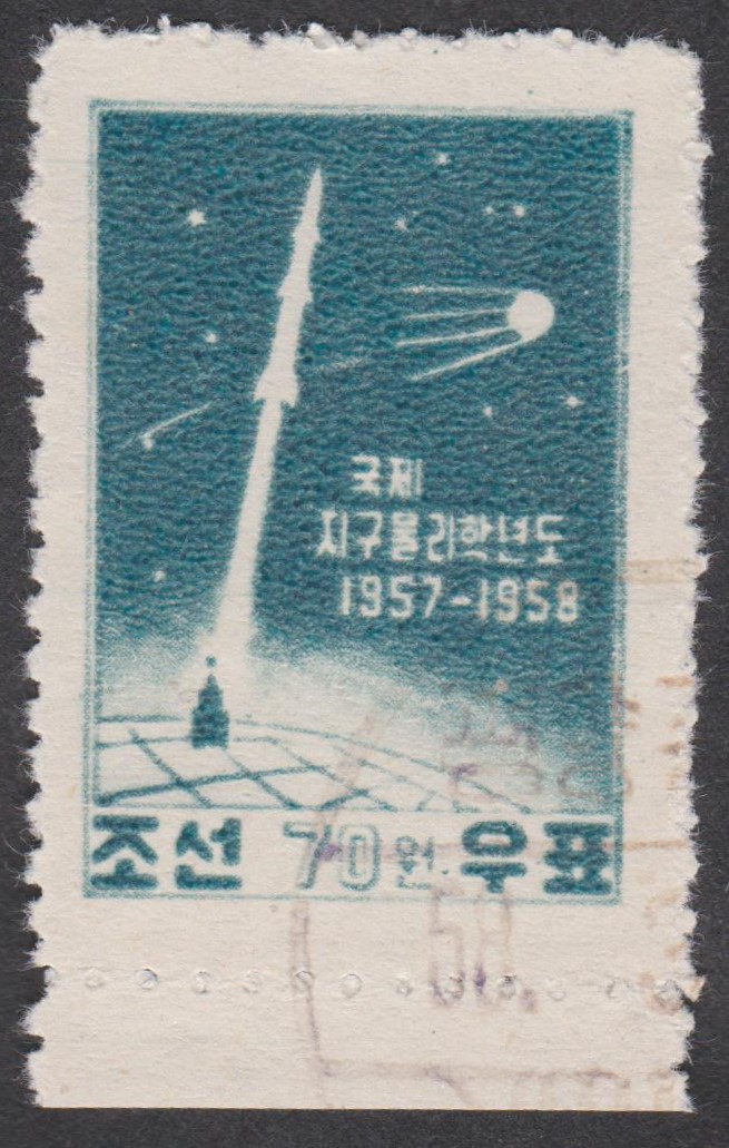 Hier die beiden in der Sowjetunion zum Start von Sputnik 1 erschienenen zwei bildgleichen Postwertzeichen: