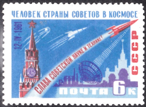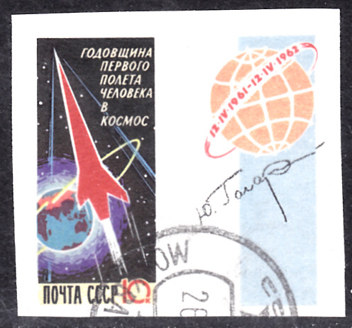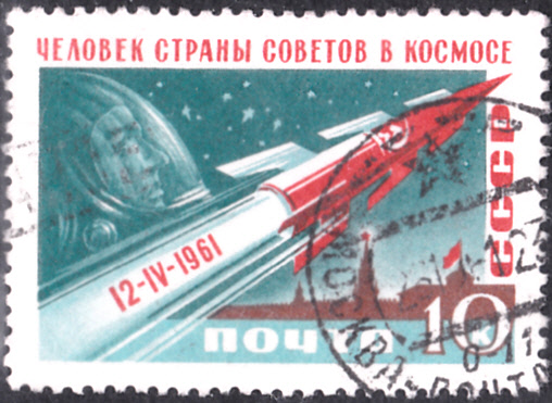 Zum Start des ersten bemannten Raumfluges erschien in der Sowjetunion in einer Serie diese Marke (MiNr 2474 AI) erschienen.