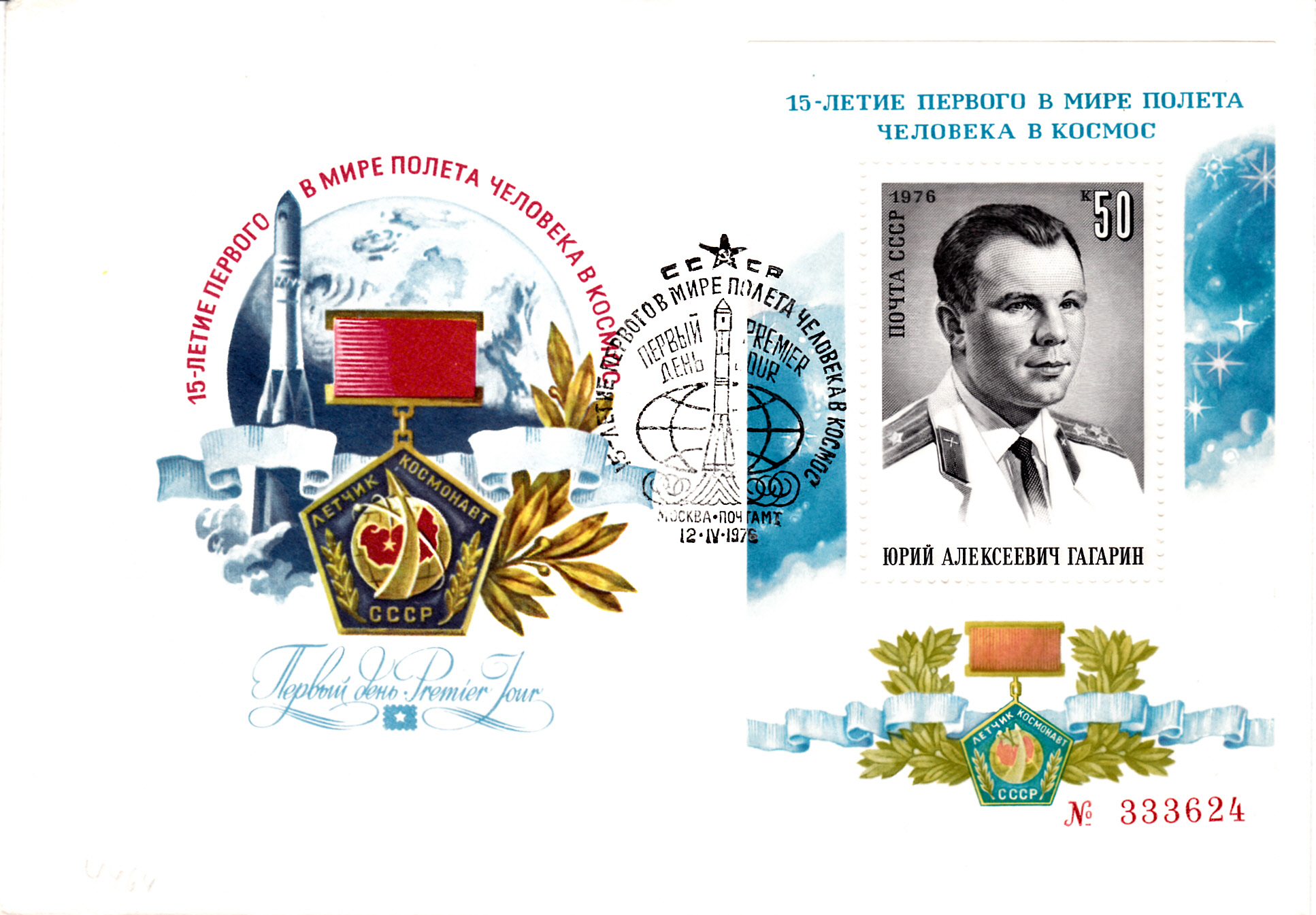 Zum Tag der Kosmonauten ist 1975 in der Sowjetunion ein Block (MiNr Block 111) mit einer Marke (MiNr 4464) erschienen. Die Marke des Blockes zeigt ein Porträt von Jurij Gagarin.