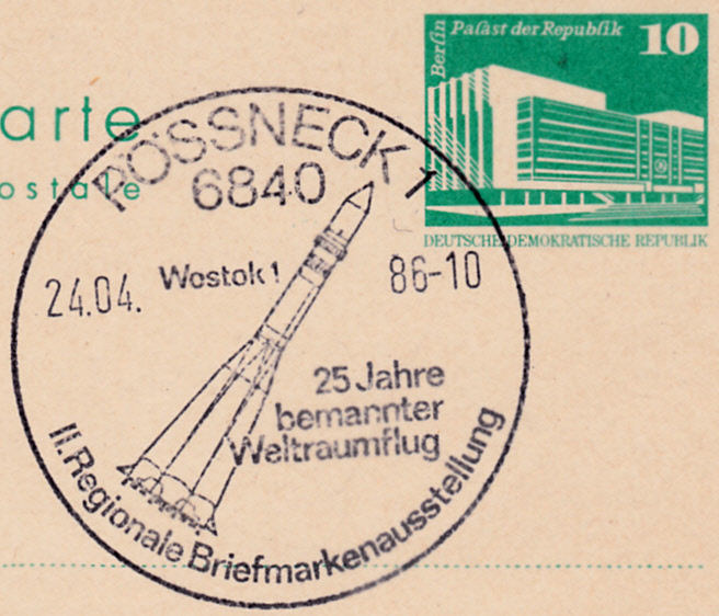 Zum 5. Jahrestag des Starts von Wostok 1 wurde in der DDR beim Postamt Berlin 8 ein Sonderstempel eingesetzt.