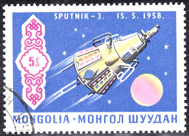 In einer Serie "Geschichte der Raumfahrt" erschien in der Mongolei auch eine Marke (MiNr 570), die Sputnik 3 abbildet.