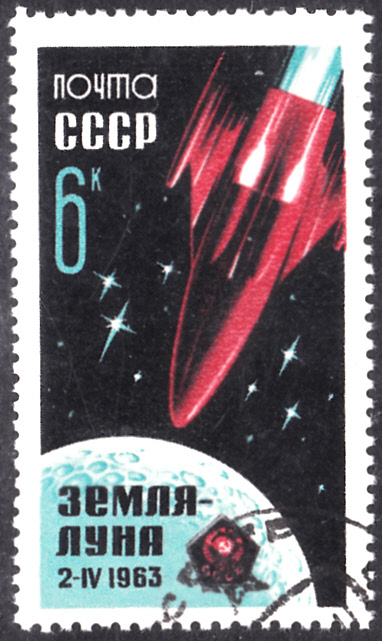 Zum Start von Luna 4 ist in der Sowjetunion diese Marke (MiNr 2743 A) mit Luna 4 und dem Mond erschienen.