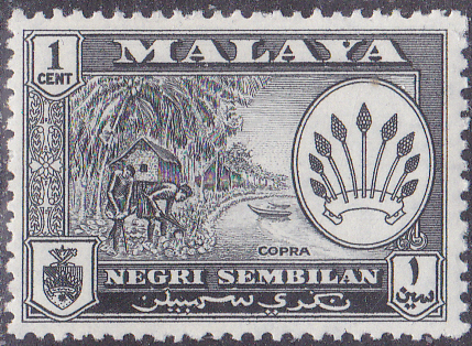 In den Malaiische Staaten V Malaienstaaten, Kedah ist diese Marke (MiNr 83) erschienen. Sie zeigt Kokospalmen und Arbeiter mit zum Trocknen ausgebreiteter Kopra.