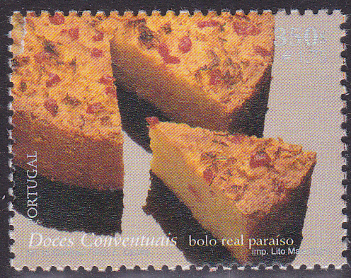 Ein Kuchen mit geraffelten Früchten ist auf dieser Marke der Serie (MiNr 2442) zu sehen.