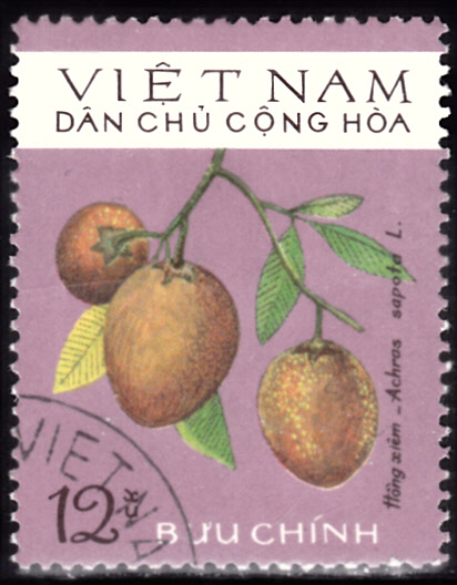 Auf dieser Marke aus Vietnam (MiNr 806) sehen wir einen Zweig des Sternapfelbaumes (Chrysophyllum cainito) mit Früchten.