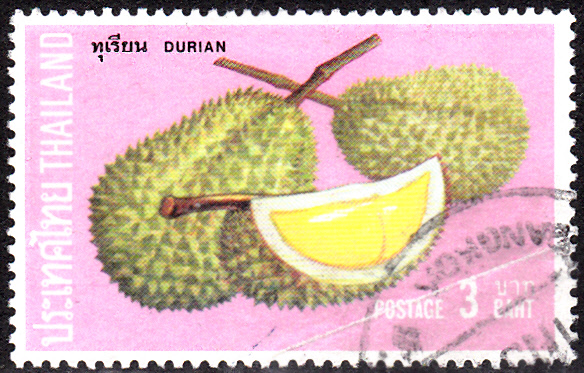 Auf dieser Marke aus Thailand (MiNr 645) sind Durianfrüchte abgebildet.