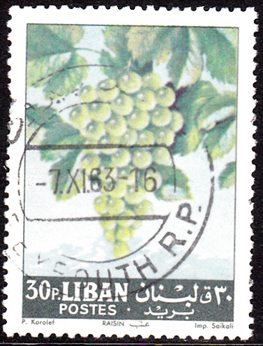 Die Marke aus dem Libanon (MiNr 802) zeigt rote Weintrauben an einem Rebstock.
