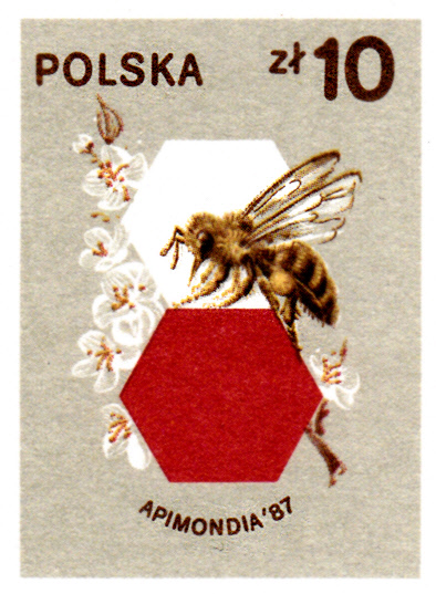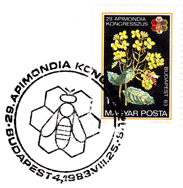 Zum Internationaler Kongress für Bienenzucht APIMONDIA in Budapest erschien in Ungarn am 25.8.1983 eine Marke (MiNr 3631 A), die eine Honigbiene auf einer Blüte zeigt.