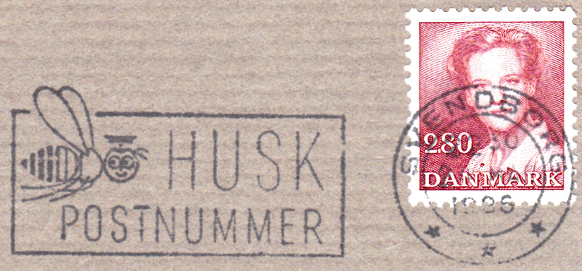 Eine symbolisierte Biene wird im Werbeklischee dieses dänischen Maschinenwerbestempel gezeigt.