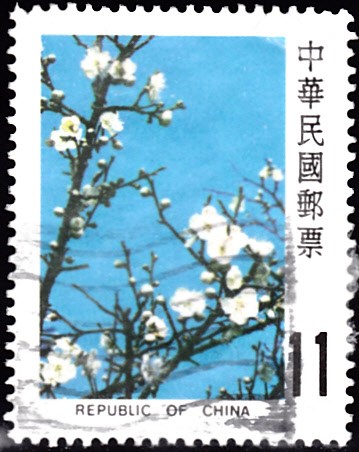 Auf dieser Marke, ebenfalls aus Taiwan (MiNr 1540), sind die weißen Pflaumenblüten besser zu erkennen.