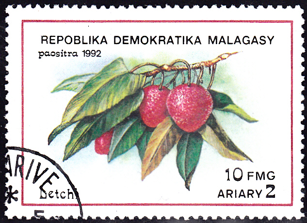 In Madagaskar ist diese Marke (MiNr 1359) mit einem Zweig eines Litschibaumes (Litchi chinensis) mit Früchten erschienen.