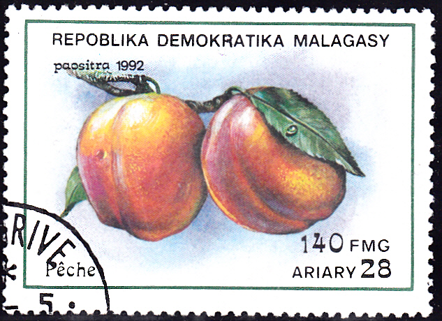 Auf der nächsten Marke aus Madagaskar (MiNr 1361) ist ein Zweig mit Äpfel abgebildet.