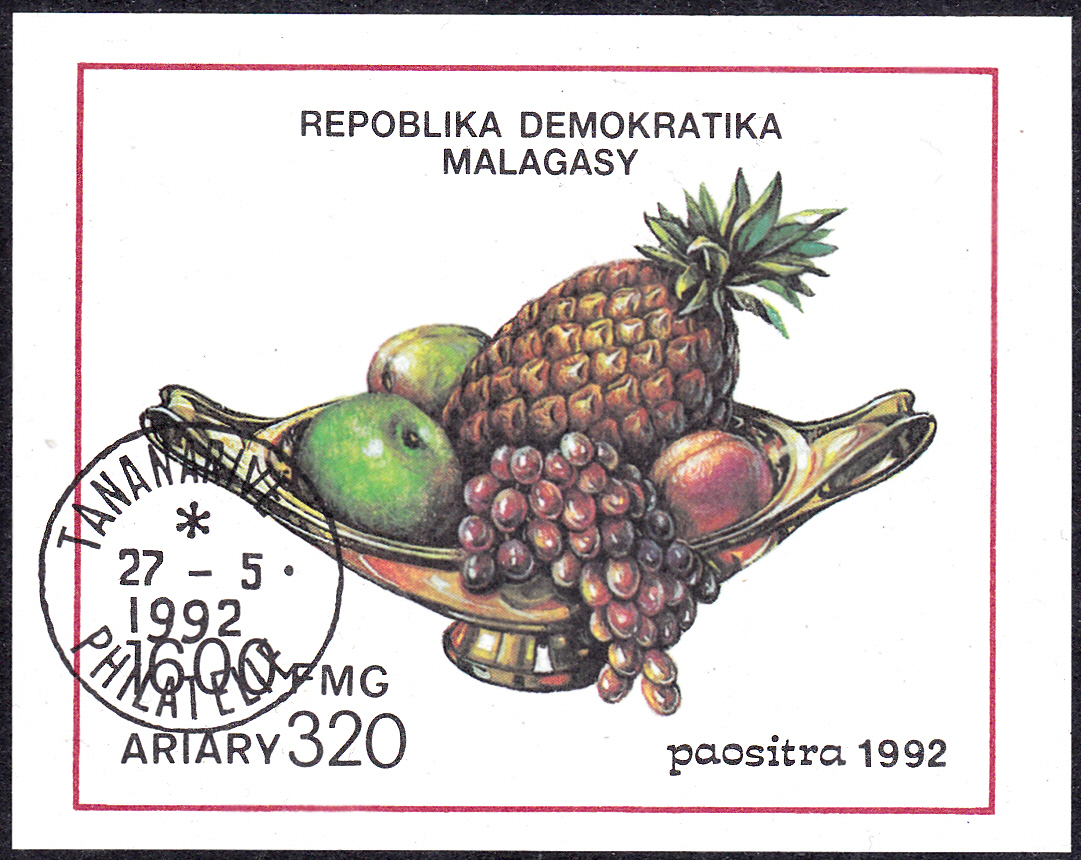Zur Ausgabe aus Madagaskar gehört auch noch ein Block (MiNr Block 1898) mit eine Obstschale mit Obst.