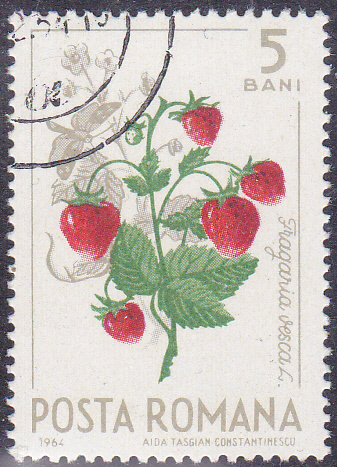 Diese Marke aus Rumänien (MiNr 2361) bildet Walderdbeeren (Fragaria vesca) ab.