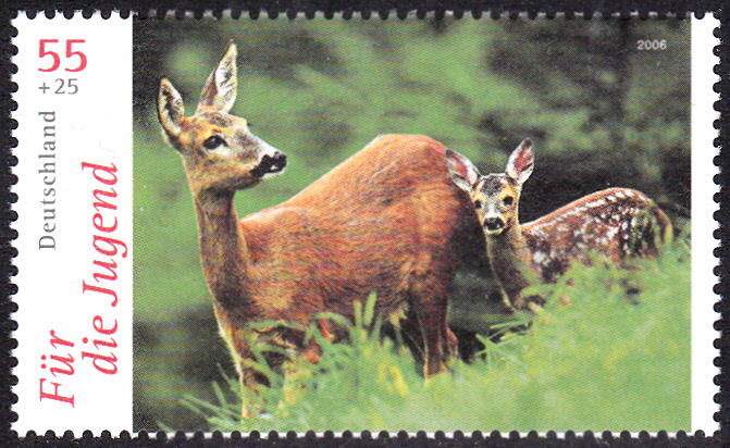 In der Jugendmarkenserie 2006 der Deutschen Post gibt es auch eine Marke (MiNr 2542) mit einem Reh (Capreolus capreolus) mit Kitz