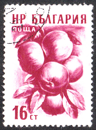 Und auf dem dritten Wert dieser Serie (MiNr 984) aus Bulgarien sehen wir Äpfel (Malus sylvestris var. domestica).