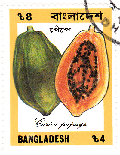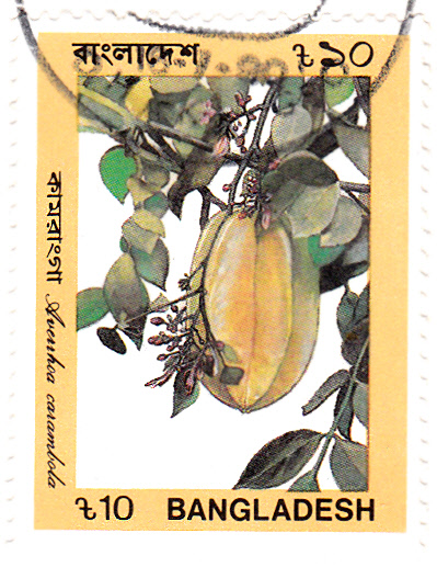 Auf dieser Marke zu 2 Taka aus Bangladesch (MiNr 335) ist eine Guave an einem Zweig abgebildet.