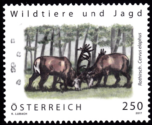 In der Serie "Wildtiere und Jagd" ist in Österreich auch eine Marke (MiNr 3366) mit zwei Rothirschen Cervus elaphus) und einer Fährte erschienen.
