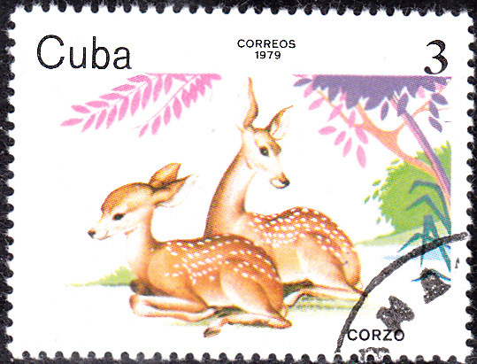 Auf dieser Marke aus Kuba (MiNr 2441) zeigt zwei Rehkitze.