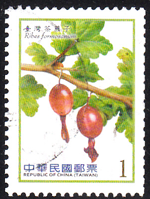 Auf dieser Marke aus einer Freimarkenserie "Früchte" aus Japan (MiNr 3791) wird eine Beere mit dem lateinischen Namen Ribes formosanum gezeigt. Es handelt sich wie bei unserer Johannis- und Stachelbeere um eine Pflanzenart aus der Gattung Ribes innerhalb der Familie der Stachelbeergewächse (Grossulariaceae).