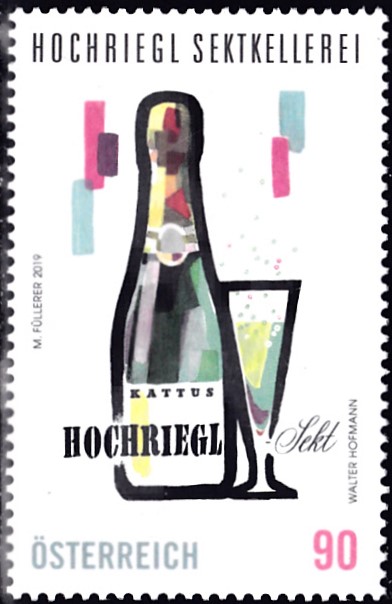 In der Serie "Klassische Warenzeichen" ist in Österreich diese Marke (MiNr 34554) erschienen. Sie zeigt eine Flasche und ein Glas der Sektkellerei Hochriegel.