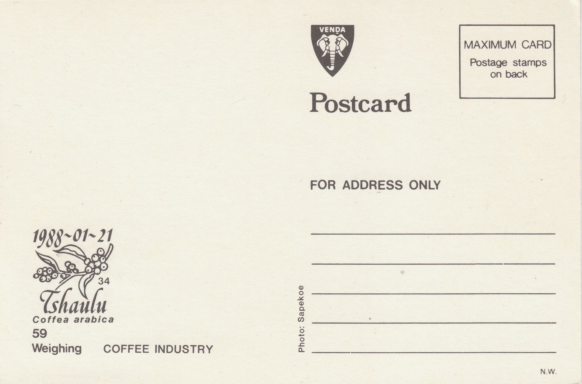 Hier eine Maximumkarte einer Ausgabe vom 21.01.1988 zum Thema "Verwiegung von Rohkaffee":