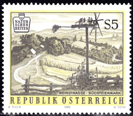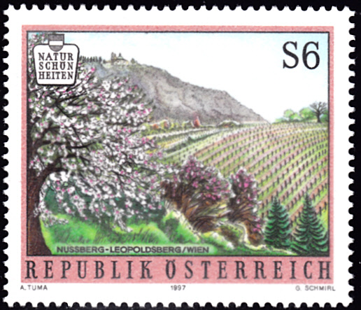 In der Serie "Naturschönheiten in Österreich" ist diese Marke (MiNr 2211) mit der Abbildung der Weingärten auf dem Nussberg vor dem Leopoldsberg bei Wien.